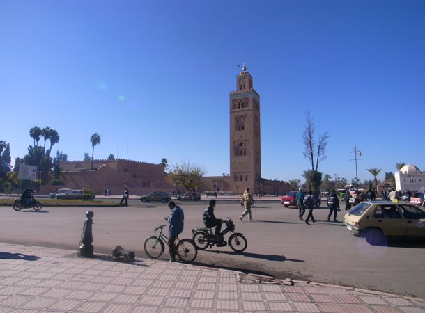 写真の塔は『クトゥピア』。マラケシュのシンボルの1つ。なんだか傾いている気もする。スペインのヒラルダの塔に似たムーア式の建築で1192年に塔は完成。元はモスクもあったそうだが現在は残っていない。4面それぞれに異なる装飾がなされている。高さは77m。マラケシュの街のあちらこちらから見ることができるので、しばしば自分の位置確認にもなった。