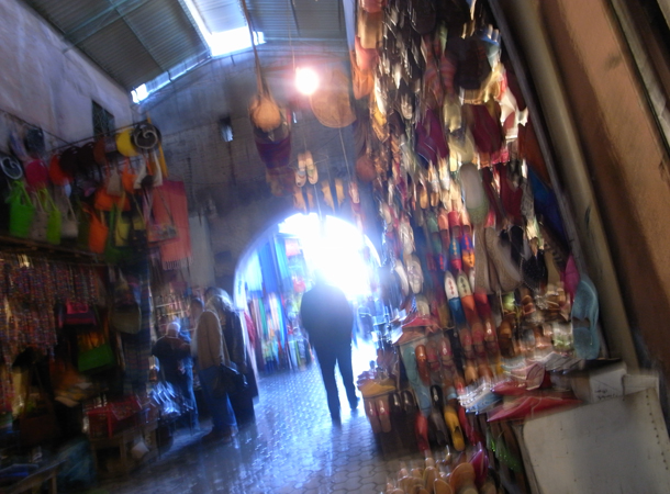 スークの中はまさに迷路。メディナ自体もほとんど迷路だが、ここはさらに。メインの通りと思われる通りも狭いところでは幅が2mもない。両側には様々な店舗が並いんでいる。