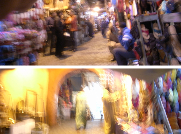 スークは商店街の一種。マラケシュのスークは世界最大と言われている。ゆっくりとカメラを構えるのが憚れる文化・場所なので、どれもぶれていたりとちょっと悪い写真ばかり。ご容赦。