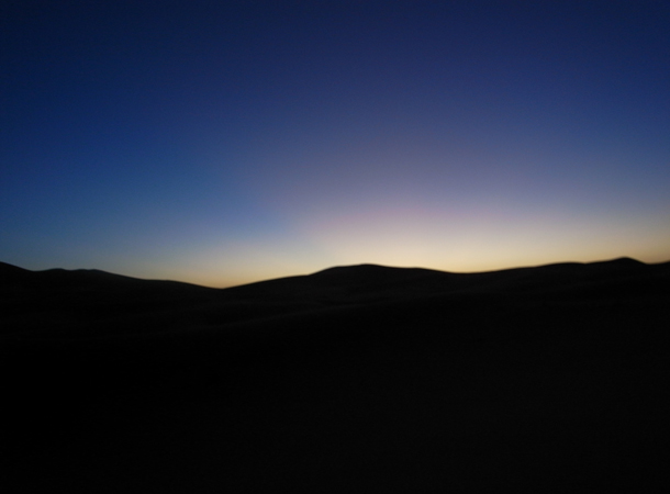 砂丘が手前のはずなのに砂丘よりも空が近くに見えたり。まるでジェームス・タレルの世界。彼の作品はまさにこの瞬間を再現しているようにも思える。