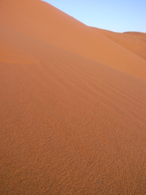 無限の曲面をもった砂漠が夕日を浴び、その色を変えていく。風紋が美しく陰影を刻む。