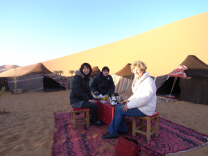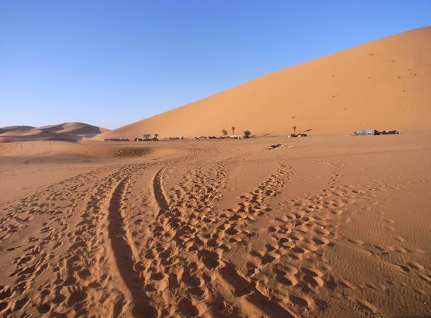 昨日は暗くてわからなかったが、一晩過ごしたテント群は湾曲する特別大きな砂丘の懐にあって、おそらく風をしのげる場所だったらしい。