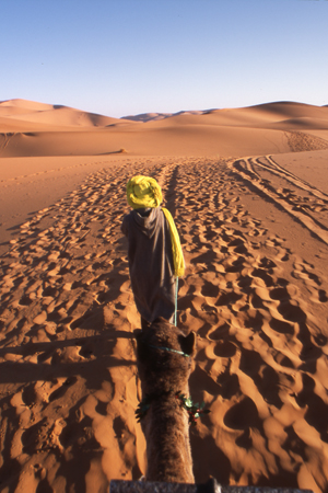 案内人はラクダに乗らず、ラクダの口に結わえられた2,3mほどの手綱をもって歩くようだ。
