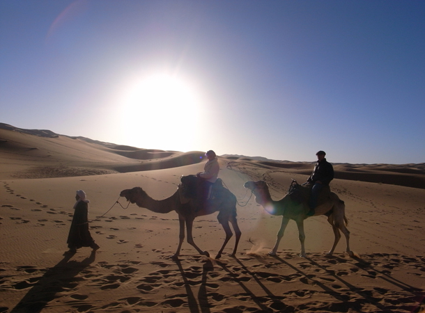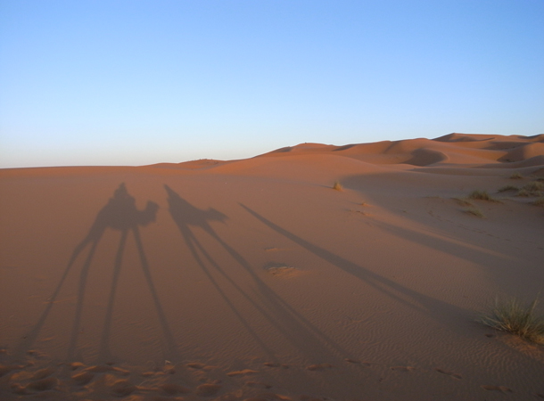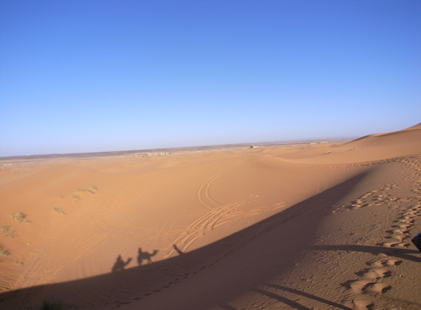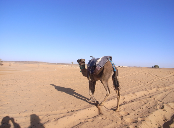 まだまだ日は低いが、それでも充分太陽の強さをじりじりと感じる。隣には先程お別れしたオランダ人親子+ラクダが。