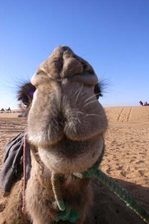 ラクダにも挨拶をしてみるが、無愛想?な表情。