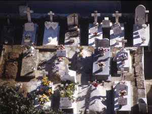 城壁のすぐ外に墓地がある。ずいぶんと明るい感じの墓地で石棺のようなものからそのまま土葬にしたようなものまで並んでいる。
