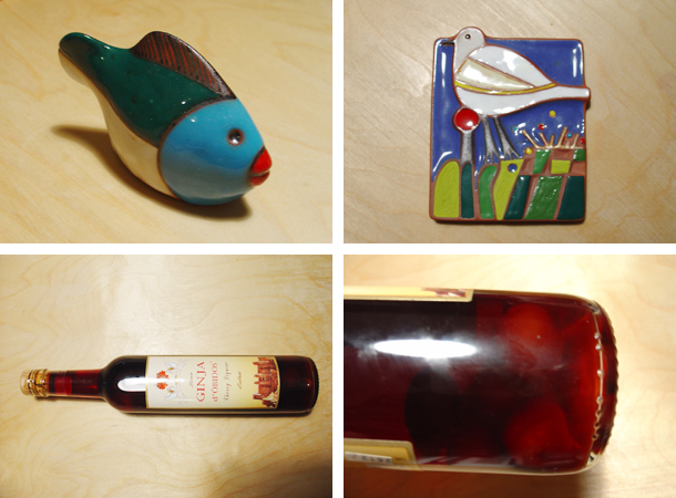 まずはGinja(ジンジャ)で乾杯。Ginjaはさくらんぼを漬け込んだお酒。特にオビドス産は品質が良いことでしられているそうな。地元ではGinjinha(ジンジーニャ)と呼ぶ。かわいらしいグラスで登場。