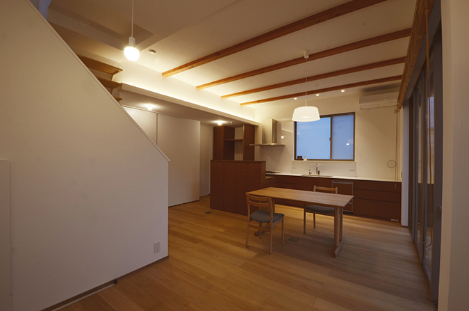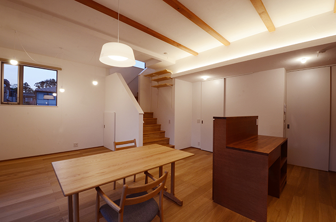 その下には天井高の高いリビングをつくりだしている。