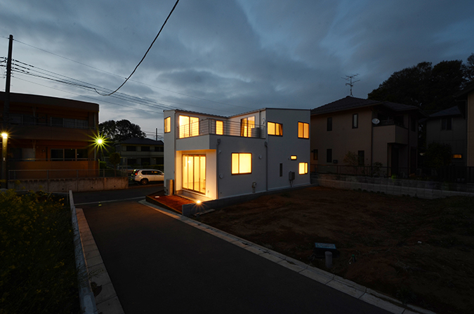 都市郊外の中に建つ家族4人のための家。