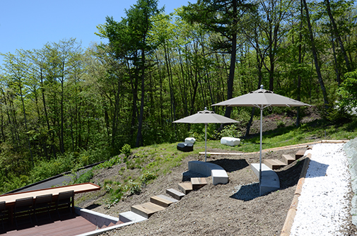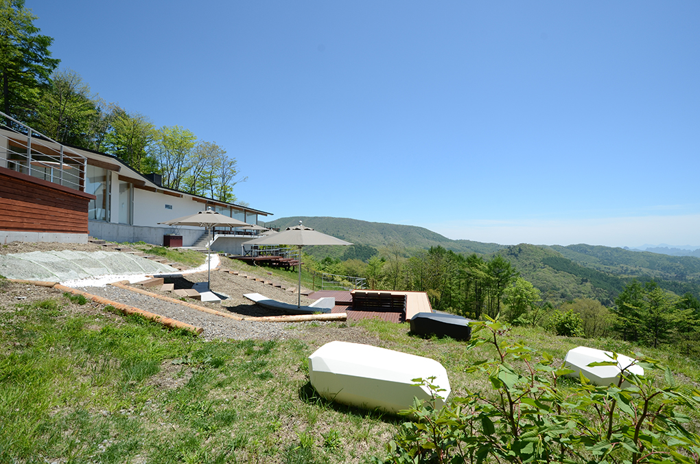 軽井沢を見渡せる山の尾根に建つカフェのランドスケーププロジェクト。