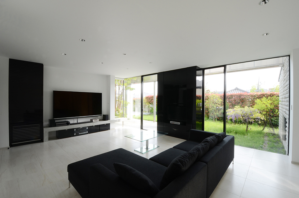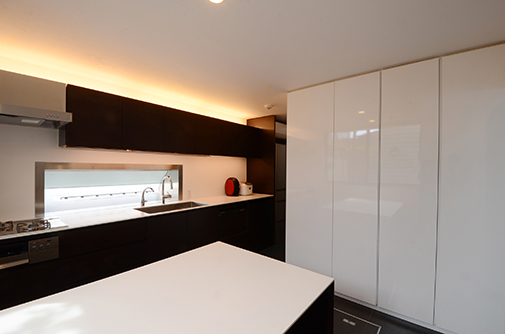 化粧的な凹凸や様々なパーツなど要素の多かった既存空間をシンプルな形状と厳選された素材・家具で再編している。