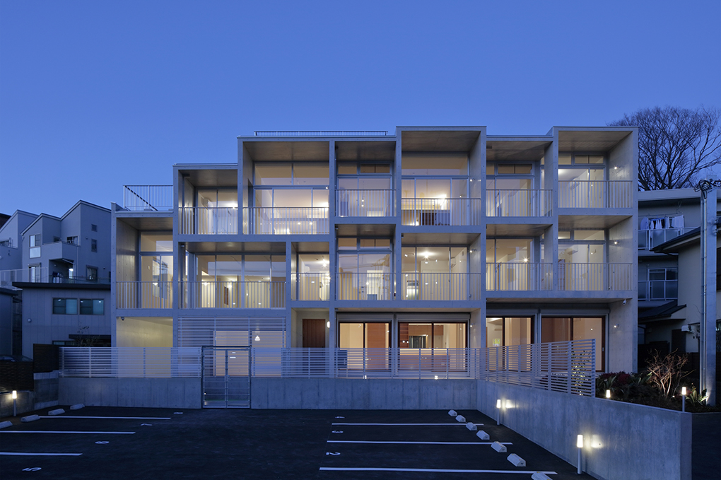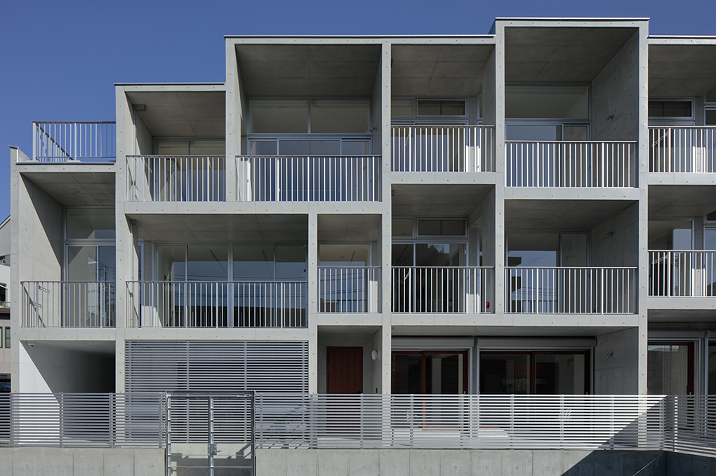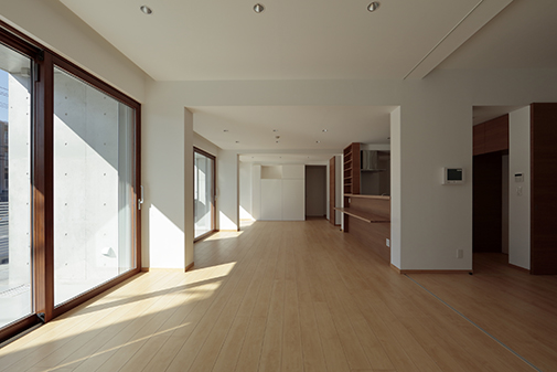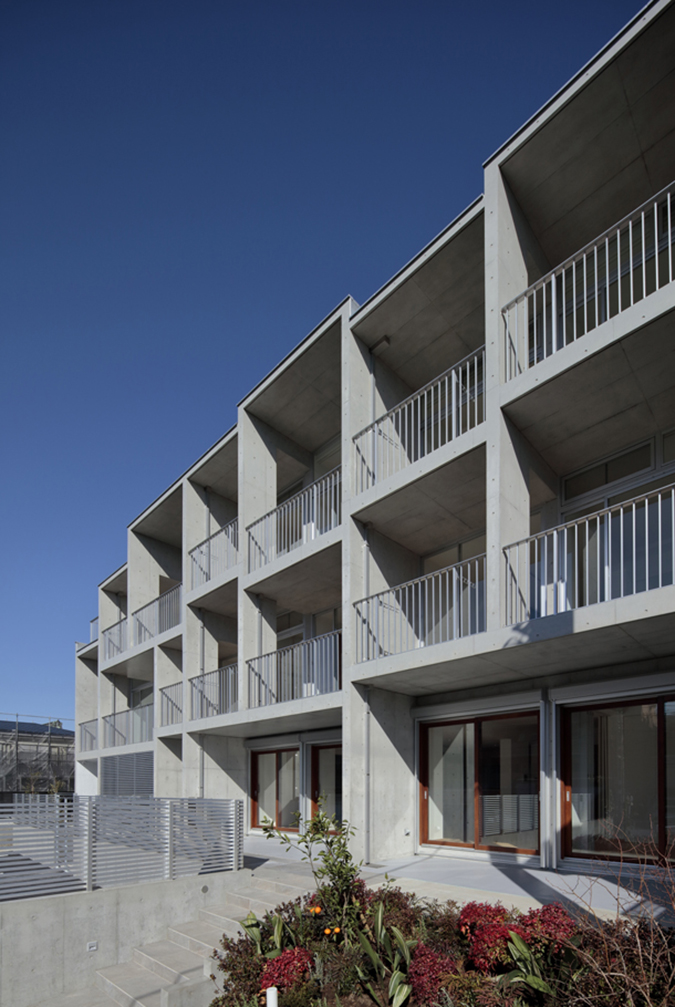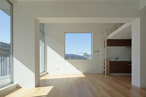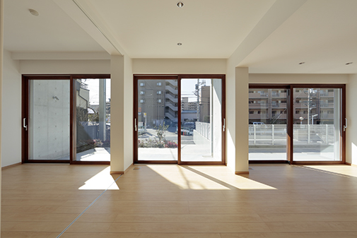 幹線道路から一本裏手の道路に面したオーナー住戸兼共同住宅。