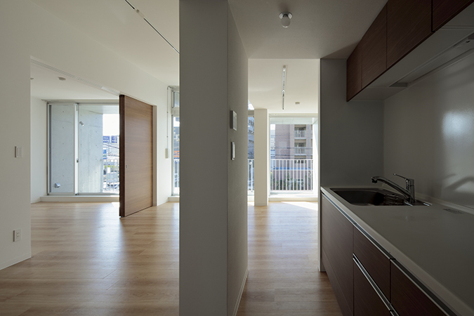 住戸ブロックには大小様々なサイズがあり、それらを2つないし3つを組み合わせることで1つの住戸となっていることと、