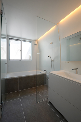 折り曲げられた壁は短手方向の耐震要素となり、構造的にも重要な要素となっている。