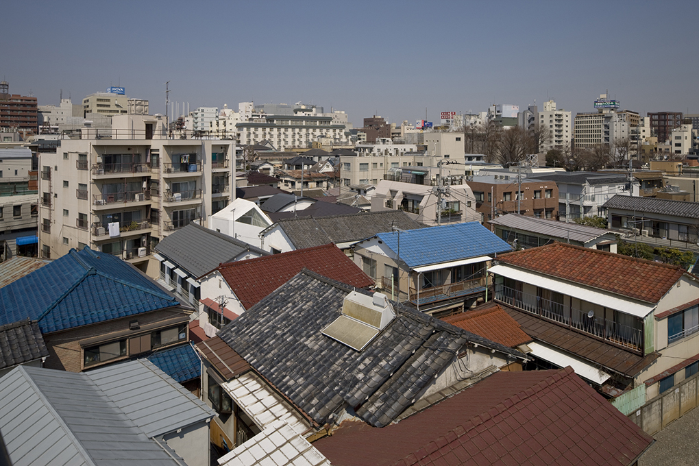 まず敷地の奥、南北方向にまるでもとからあった城壁のような大壁を建て、その脇に細長いスリットのような空隙を設けながら建物を配置した。