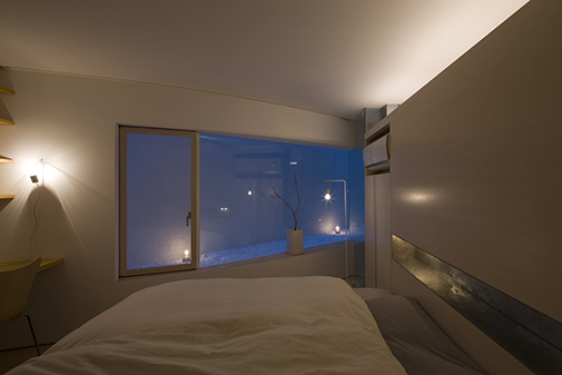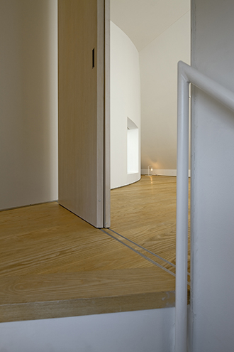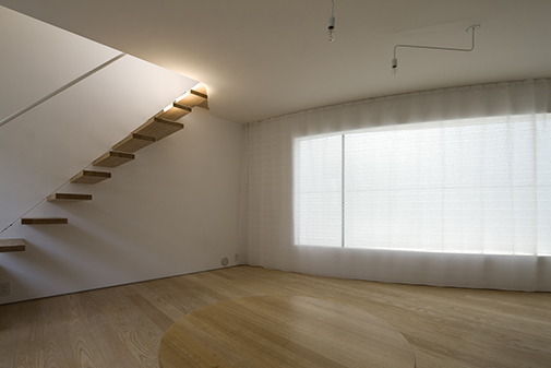 通常の時間軸上の日の光とともに、異なる時間軸の光がもうひとつあるような建築となっている。