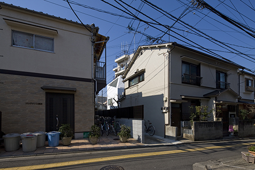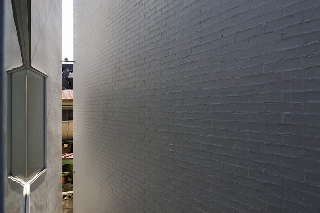 大壁はフィクショナルな性格を助長させるように煉瓦を貼り白に塗りつぶしている。
