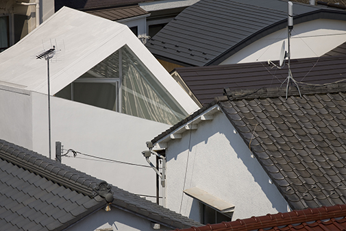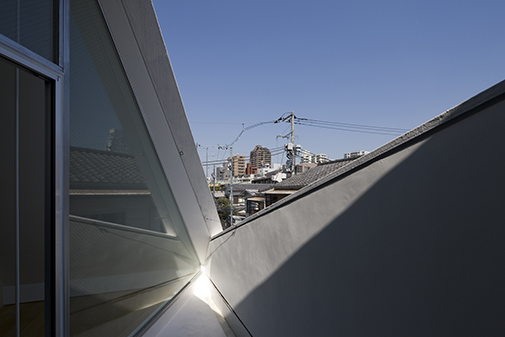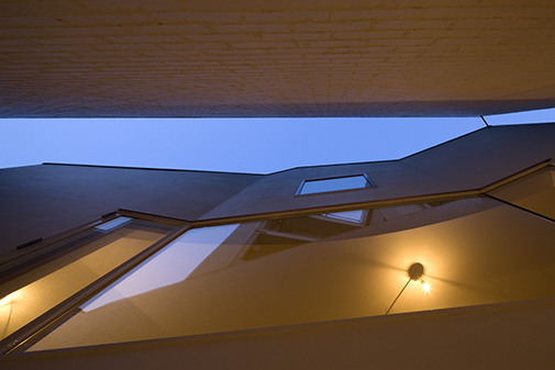 空隙内で反射を繰り返した光は3層の住戸の各層に柔らかな間接光をもたらす。