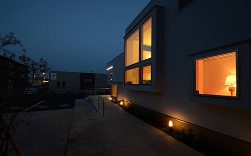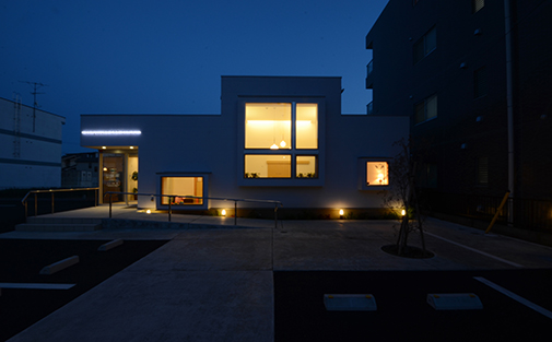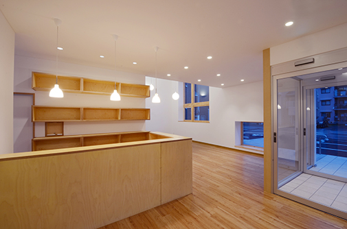 クリニックはその性質上閉鎖的な外観になりやすいが、できるかぎり開放的な雰囲気になるよう街路に対し2.7m角という大きな出窓を設けた。