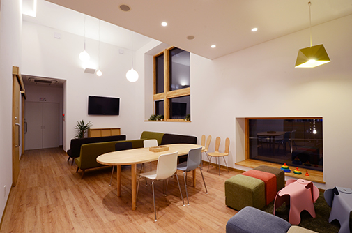 診察待ち、会計待ち、大きな待合テーブル、キッズスペースなど小さな居場所をいくつも用意し、待ち時間を少しでもストレスなく快適に過ごせるよう配慮した。