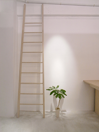次に大きな4枚の木の板を立体的に配置して、空間に心理的な「勾配」をつける。
