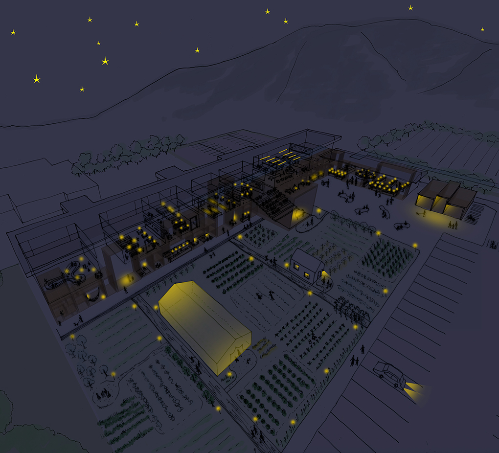 グランドにはできるだけ大きな「畑/グリーンフィールド」をつくり、建物もそれをバックアップするような機能を充実させることでより滞