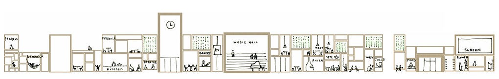 そこで、校舎の元校庭側に奥行2.4mの小さな部屋を立体的に並べることで、少人数でも居心地が良くなるような地域の人も利用しやすい空間を設けるとともに、
