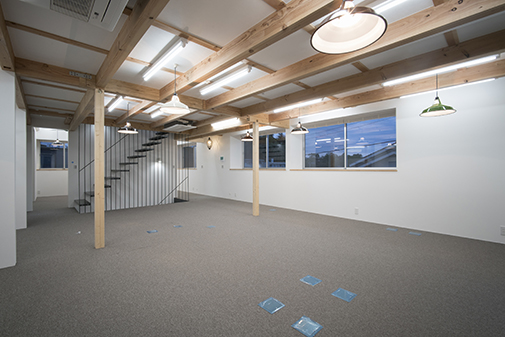 高速道路を背後にして建つ住宅兼オフィス。