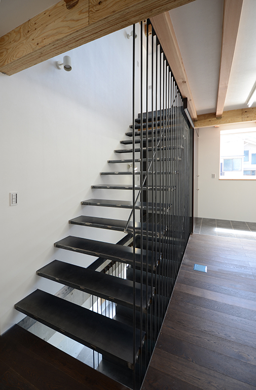 建物の中央を繊細な造りの階段が貫く。
