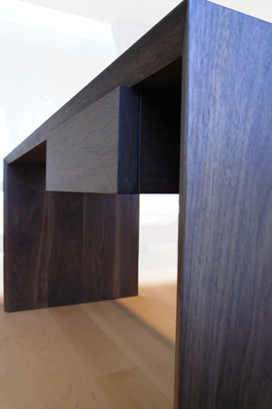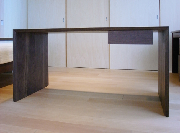 一枚の無垢板を折り曲げて作ったかのうようなデザインとしている。
