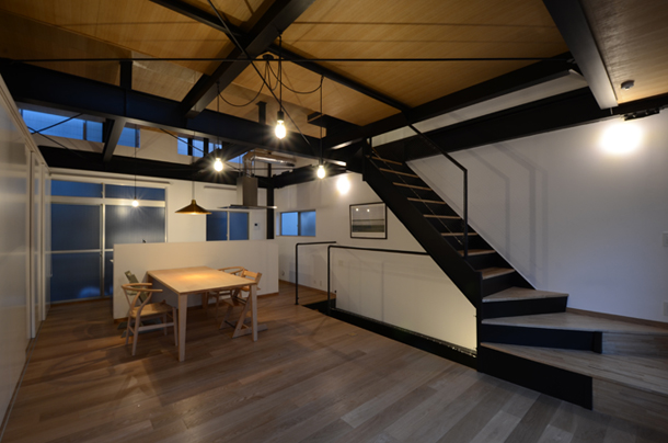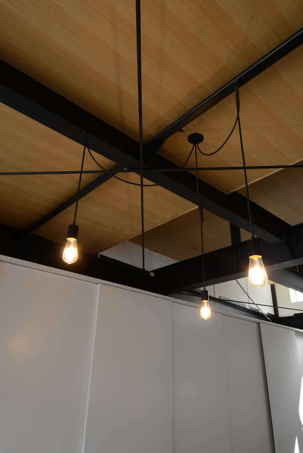 本駒込の棚田ハウスのために制作した、リビング用照明。天井の高い部屋形状に合わせて下面・上面の両方に蛍光灯を設置でき、照明光陰影をつくりづらい設計としている。