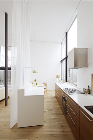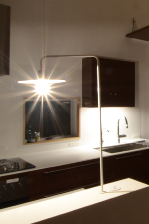 『世田谷の2階建の住宅/M House』の浴室キッチンカウンター用に製作した照明。カウンター面で器具が回転できる。脇には専用のトグルスイッチを付けた。