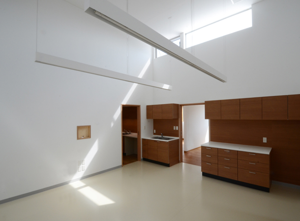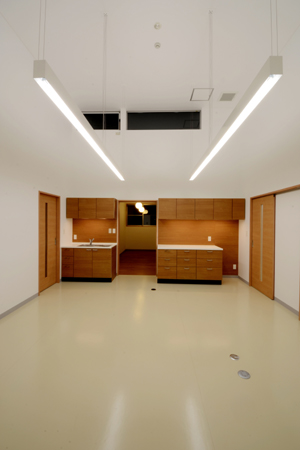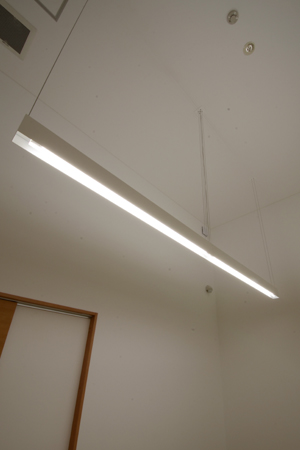 茅ヶ崎みみ・はな・のどクリニック計画のために制作した、診察室用照明。天井の高い部屋形状に合わせて下面・上面の両方に蛍光灯を設置でき、照明光陰影をつくりづらい設計としている。