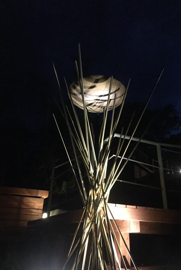 『cafe AURA』のオリジナル商品のひとつ『月の岩塩』のための真鍮製のオブジェ。月の光を集めるのをイメージしてデザインしている。