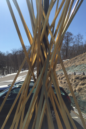 素材は真鍮の10mm角の無垢材。経年変化で色がうつろっていき大地に馴染んでいく。