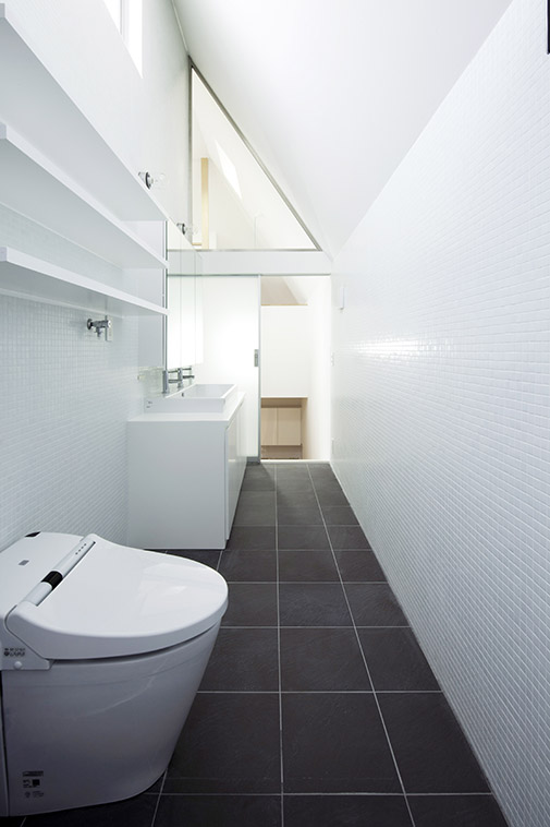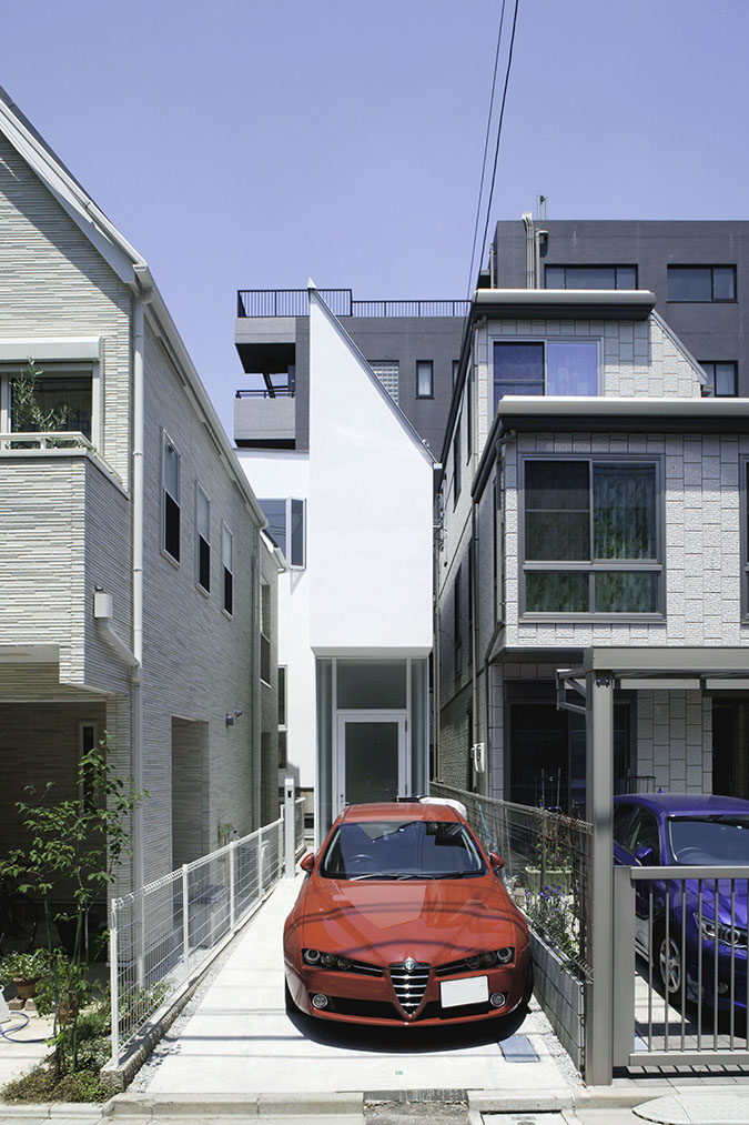 文京区の住宅地の旗竿敷地に建つ住宅。