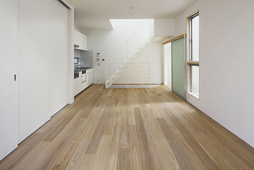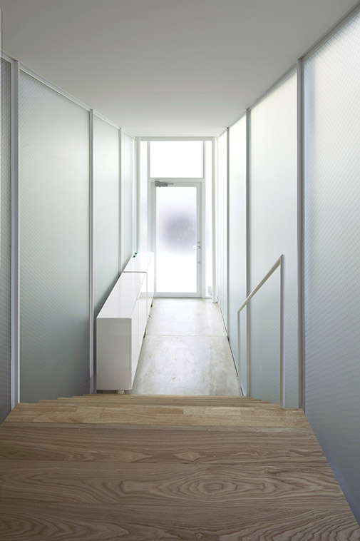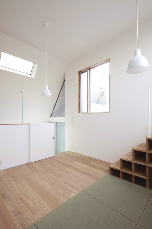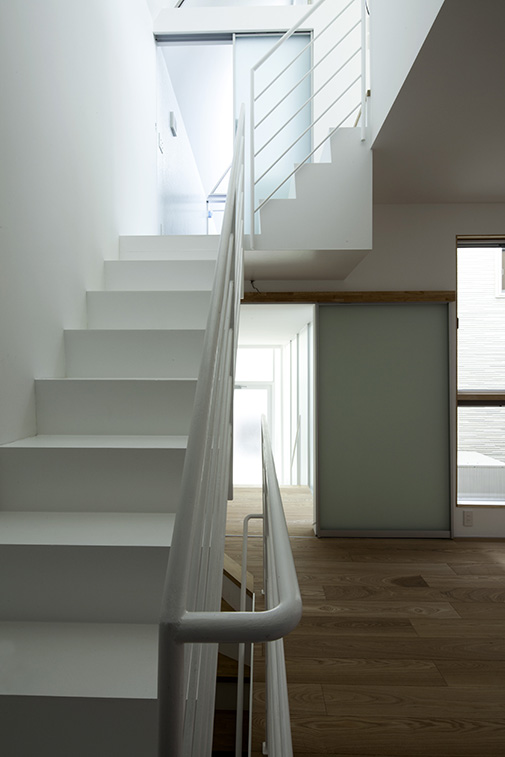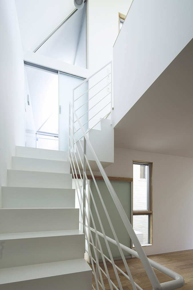 これら5つのスペースは半階ずつずれる構成となっており、その接合部は吹抜けを介する階段がある。