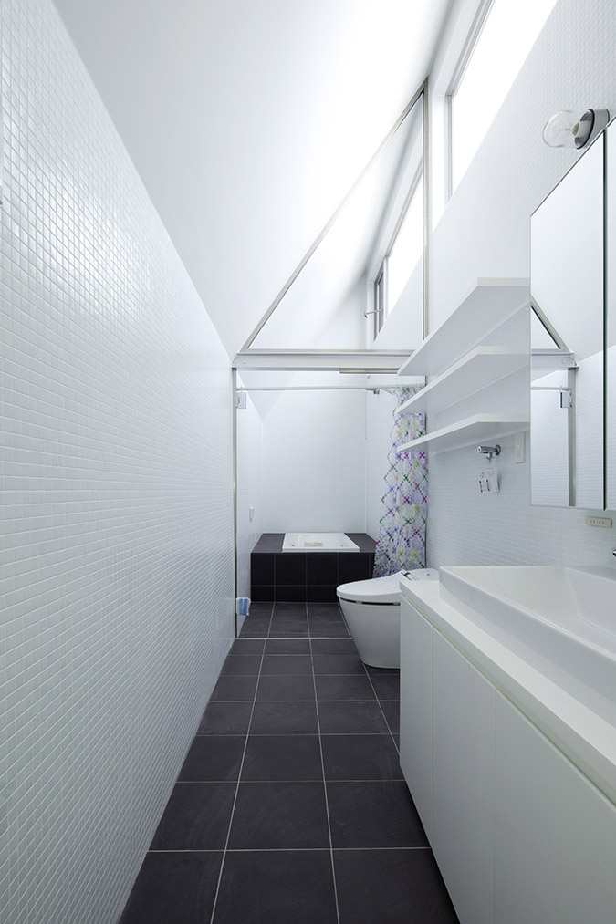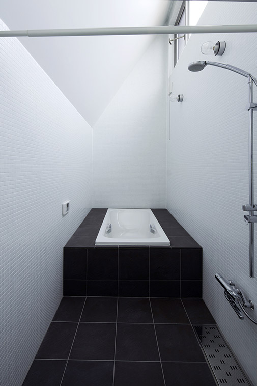 旗部は半地下を含む3層としてLDKや寝室などの居室を、竿部は2層として下部にエントランス上部に水廻りを配している。