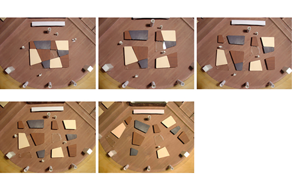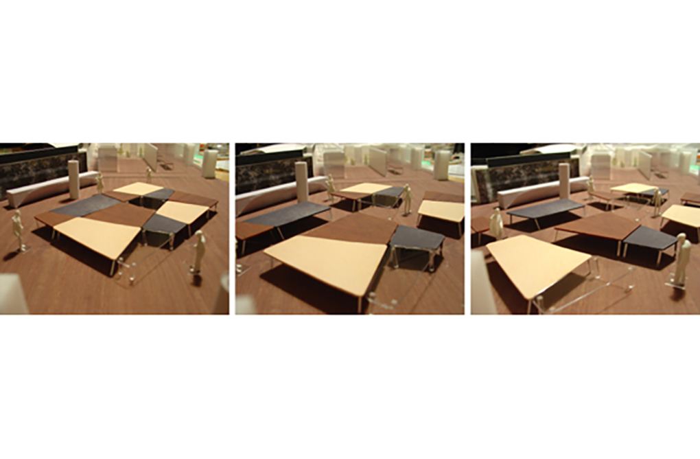巨大な長方形のテーブルを12分割し、自由にレイアウトしていくというワークフィールドをつくりだした。