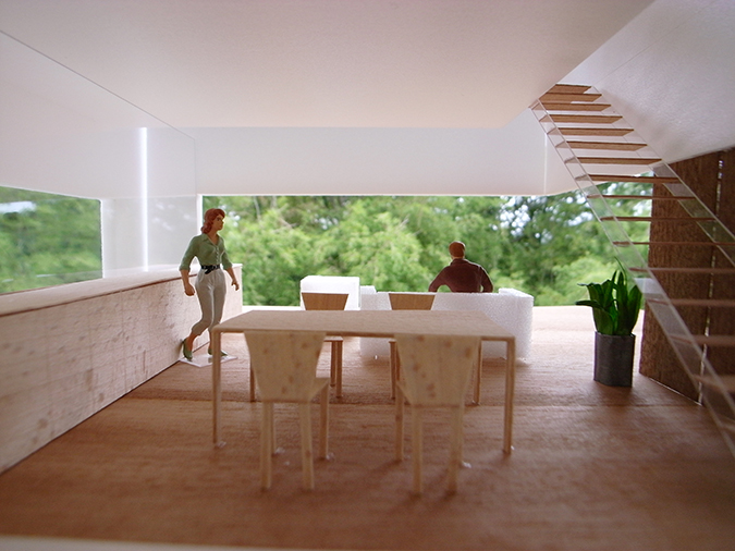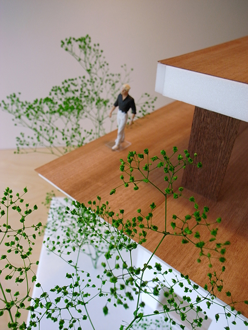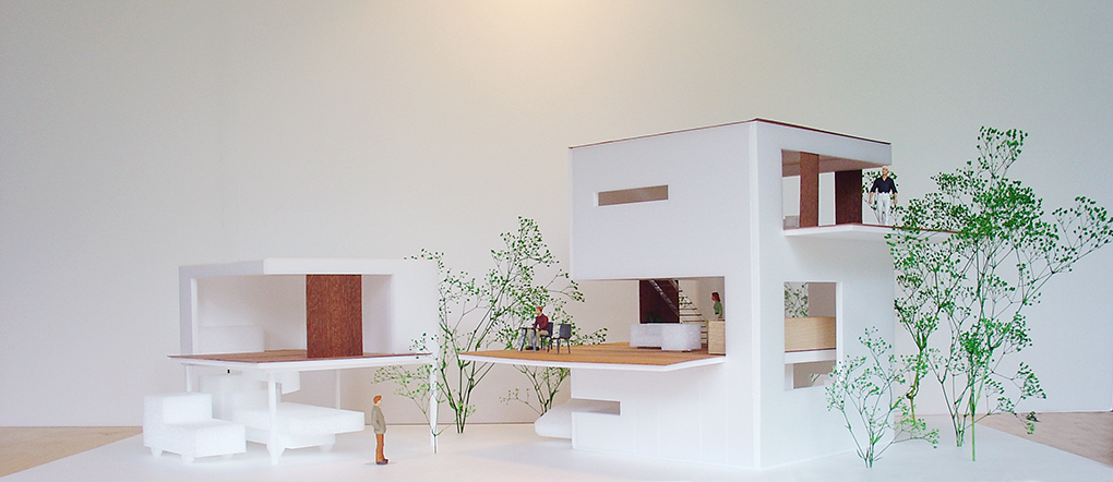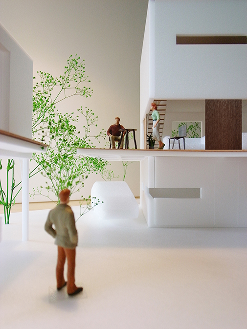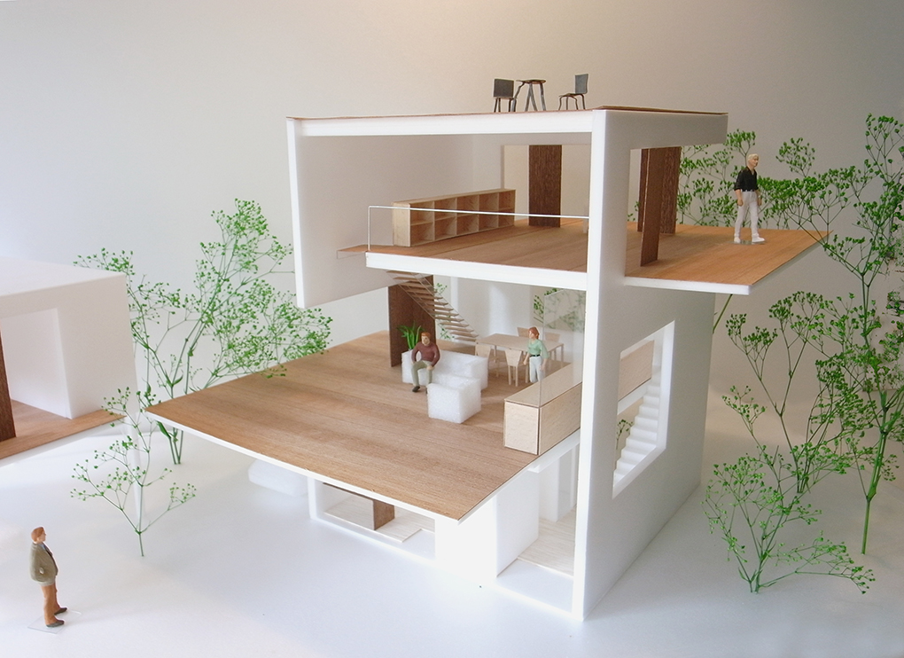 各階の床はデッキテラスとして外部にはり出すようにつくられることで様々な高さの「庭」が生まれ、それは屋上テラスまで連続していく。