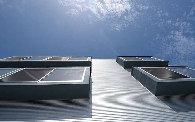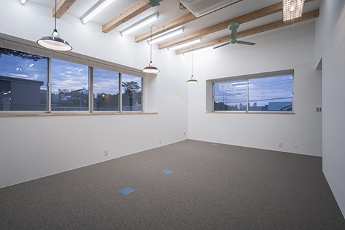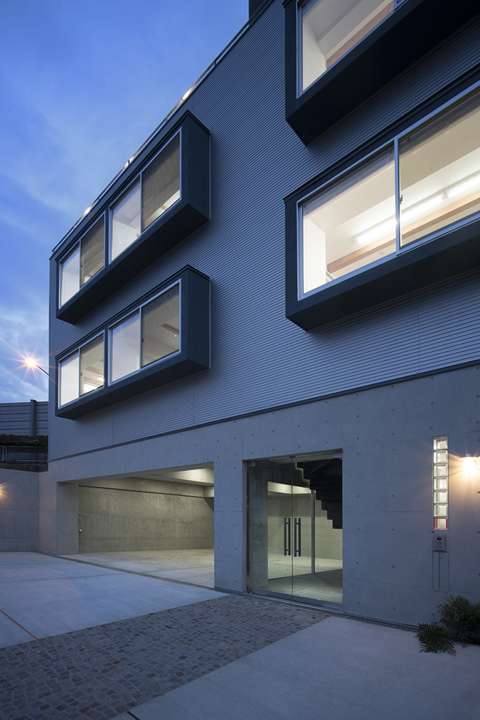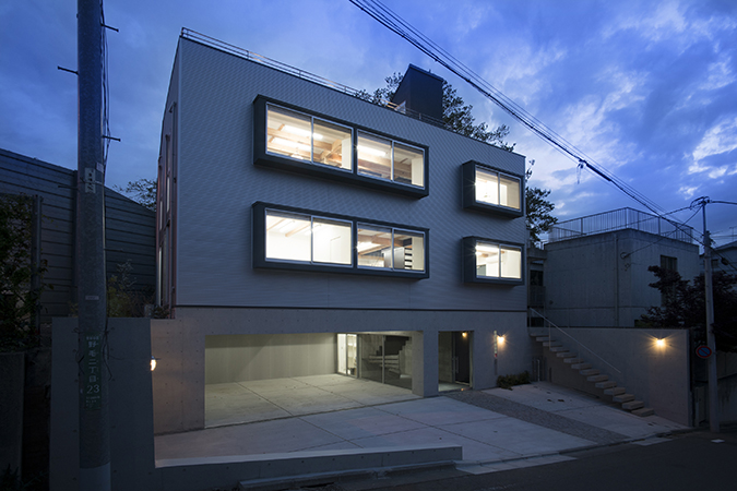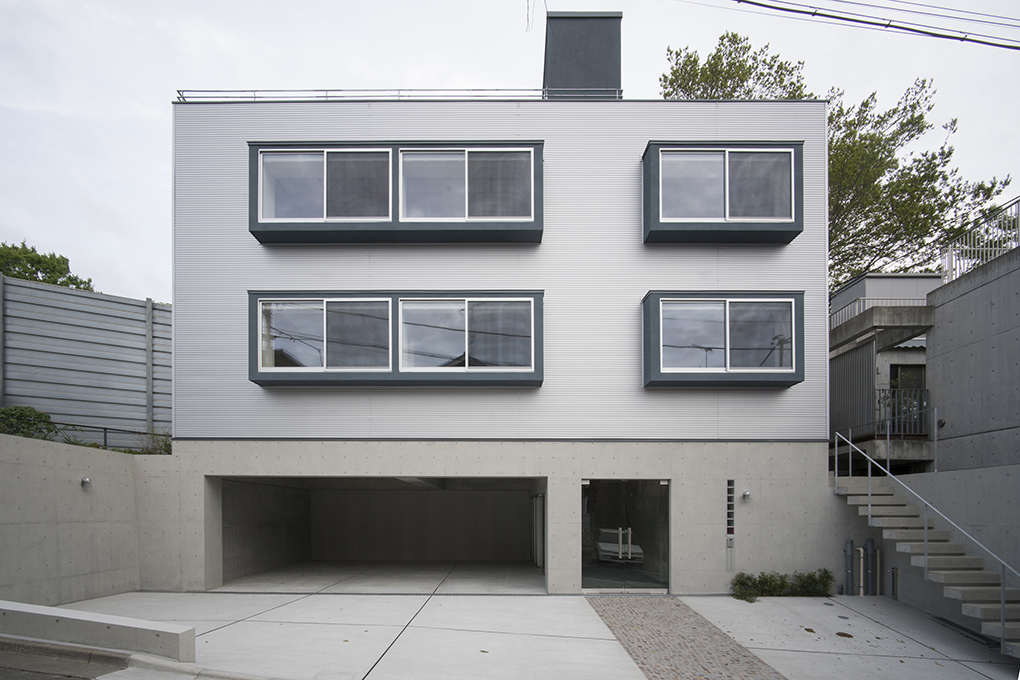 高速道路を背後にして建つ住宅兼オフィス。
